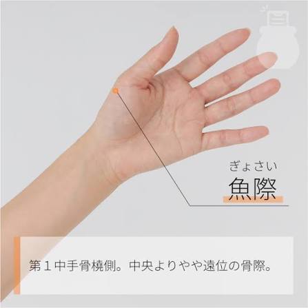 手を広げると、ここがまるで魚の腹のようにふっくらして見えることから「魚際」と呼ばれました。
