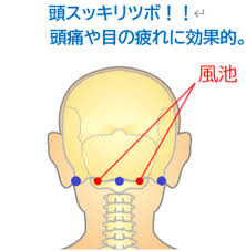 首の後ろ、髪の生え際のくぼみにあるツボ。